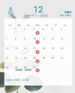 12月営業日のお知らせ